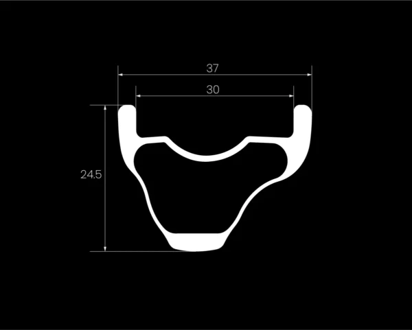 The 29er Gnar Trail carbon wheelset is designed for trail, AM, XC disciplines. It has a modern rim shape featuring an asymmetrical profile with a 30mm internal width.