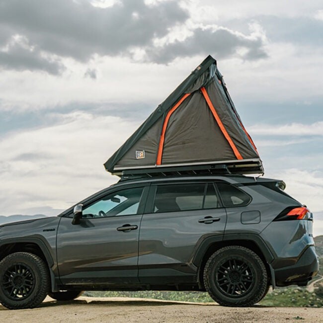 The Badass Tents PACKOUT (Assembly Required) is a very unusual rooftop tent—it blends a soft-shell design with hard-shell-style slimness, and adds a DIY modular build system to reduce cost and shipping.