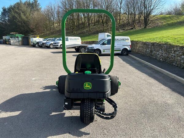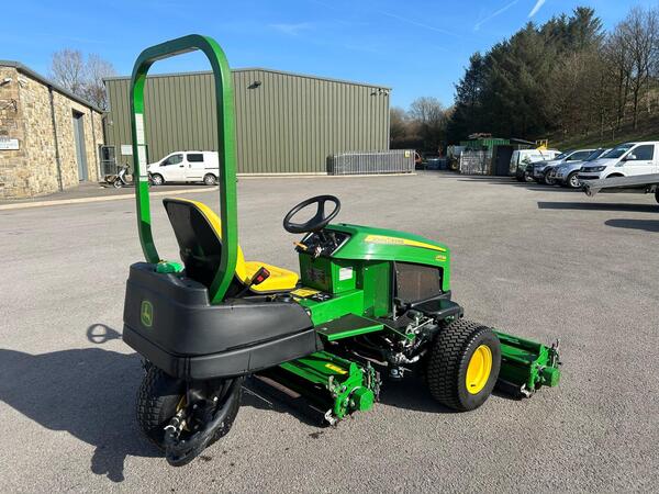 John Deere 2653B tees mower, 26″ QA7 cutting units, rear roller scraper, turf tyres.