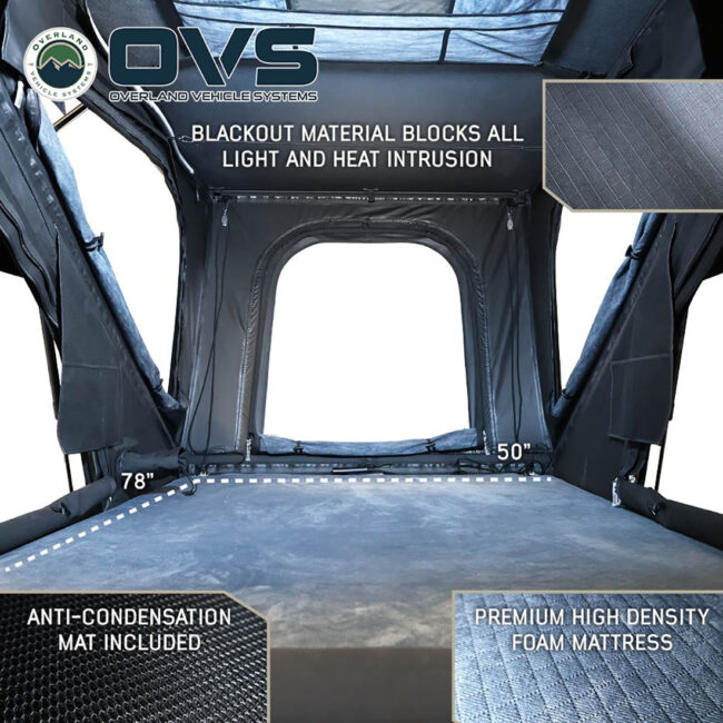 The Overland Vehicle Systems XD K2 Clam Shell Pop Up 2 Person Aluminum Hard Shell Roof Top Tent (18689902) from Nomadic Supply Company® is a premium hard shell rooftop tent engineered for overlanders who demand speed, strength, and all-season comfort. Featuring a modern dual clamshell opening system that deploys in seconds, a low-profile aluminum honeycomb shell for superior aerodynamics and durability, and a high-density 2-inch premium memory foam mattress, the XD K2 delivers a refined basecamp experience wherever the road takes you.